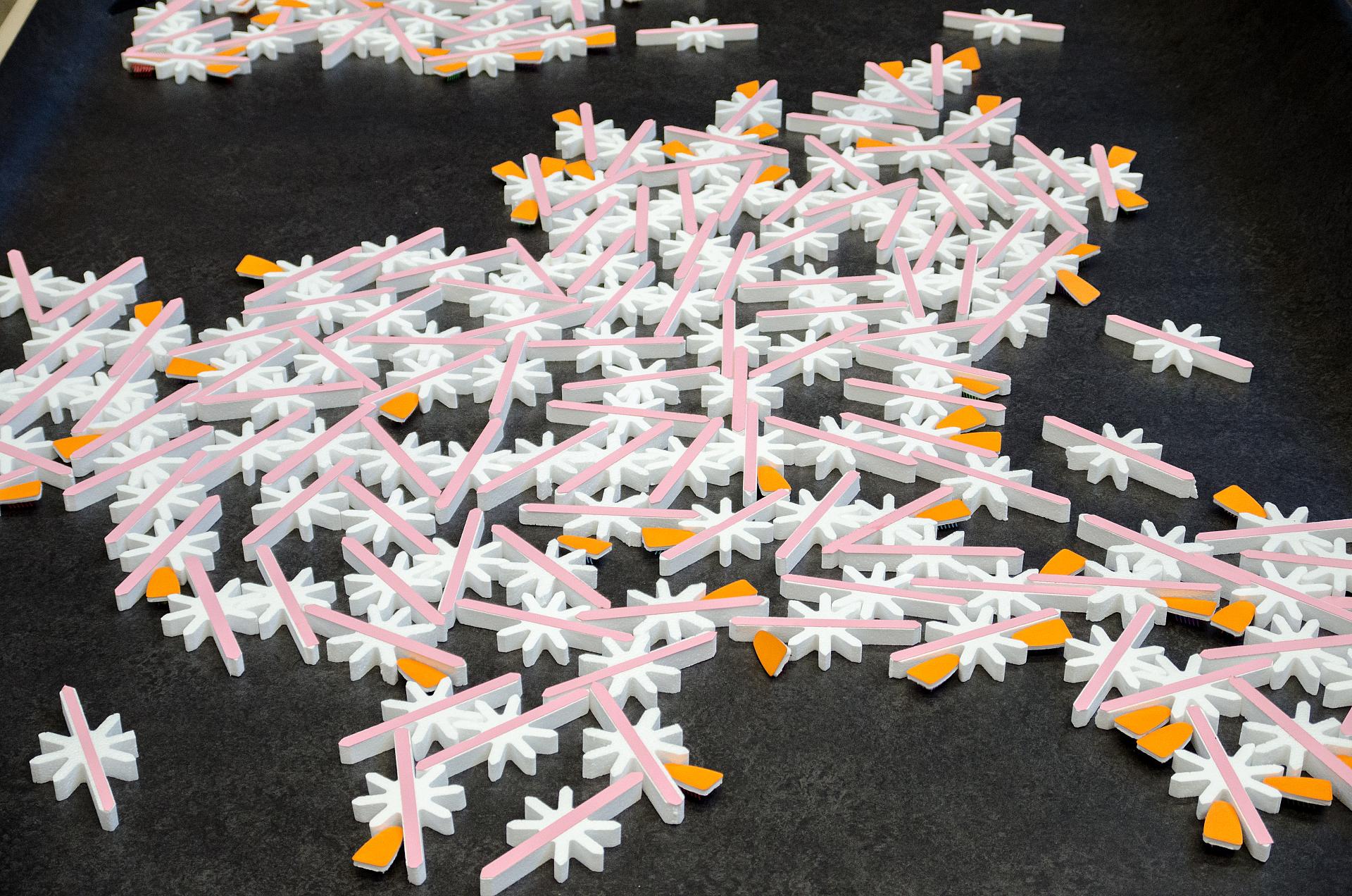 “Yfaloid” addresses the question of how can architecture redefine resources, produce food and be eaten away by developing and realizing a prototypical artificial reef structure from design to production. Artificial reefs are man made structures that are placed in featureless seabeds as a way to increase the biodiversity of marine species in degraded underwater ecosystems. Simply said artificial reefs are the substrate where algae “the food of fish” grows and thus it can serve as a structure that can increase the population of fish which then becomes the “food of humans”. The installation includes a 3d printed artificial reef module in 1:1 scale as well as a scaled prototype which is placed in an aquarium in an attempt to simulate a living underwater ecosystem.